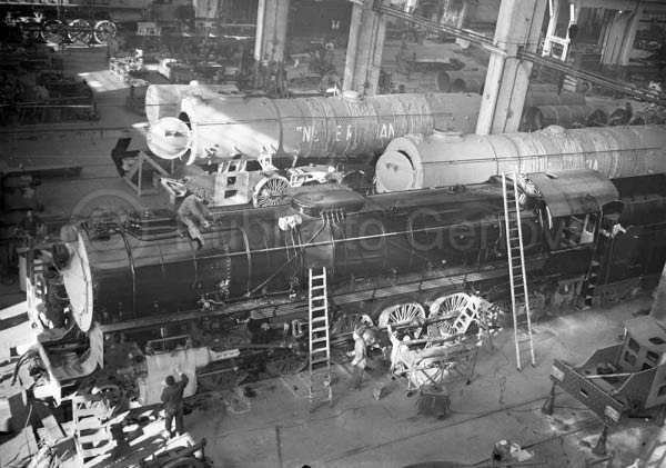 DESCRIZIONE:LOCOMOTIVA DESTINATA ALLA GRECIA IN COSTRUZIONE NEL SETTORE FERROVIARIO DELL'ANSALDO