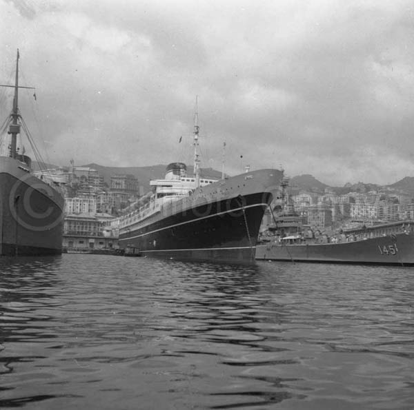DESCRIZIONE:LA TURBONAVE CRISTOFORO COLOMBO ED IL S/S CONSTITUTION NEL PORTO DI GENOVA
