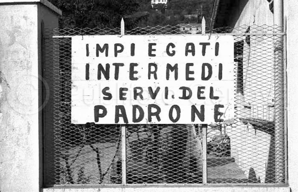 DESCRIZIONE:LA FABBRICA DELLA ITALCEMENTI (ITALCANTIERI ?) DI GENOVA OCCUPATA DAI DIPENDENTI