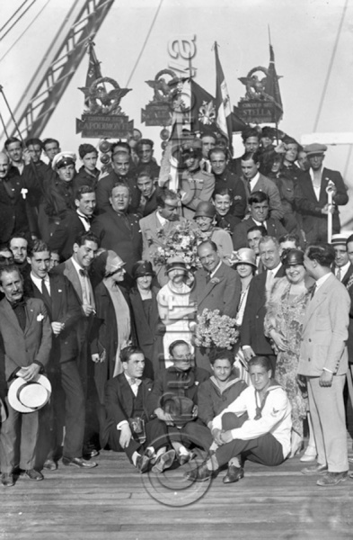 PASSEGGERI A BORDO DEI TRANSATLANTICI DI LINEA ITALIANI, NEI DECENNI 1920 E 1930. SUL “DUILIO" IL COMMENDATORE LUIGI FREDDI, REDATTORE DEL POPOLO D'ITALIA E L'ONOREVOLE NICOLA SANSANELLI, CAPO DEL FASCIO NAPOLETANO E MEMBRO DELL'ASS. NAZIONALE COMBATTENTI NEL 1928.