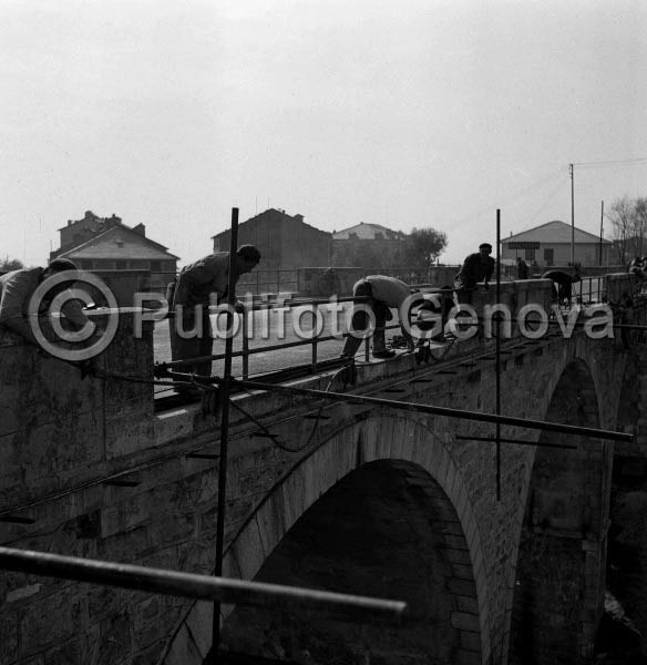 DESCRIZIONE:GLI OPERAI DELLA SIRTI POSANO UN CAVO COASSIALE SULLA VIA AURELIA TRA PIEVE LIGURE E BOGLIASCO