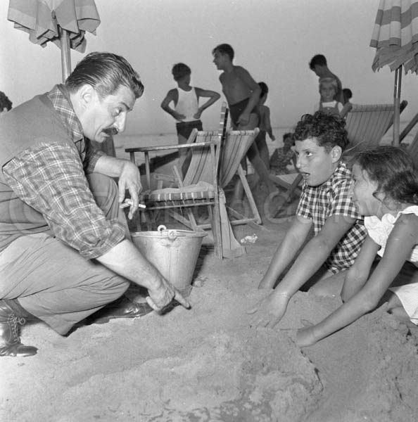 DESCRIZIONE:LO SCRITTORE GIOVANNI GUARESCHI IN VACANZA CON I FIGLI AD ALASSIO