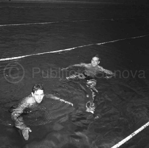SFIDA DI NUOTO ITALIA-SPAGNA. PRESENTE ANCHE CARLO PEDERSOLI, (IN SEGUITO ATTORE COL NOME DI BUD SPENCER), IN SECONDO PIANO.